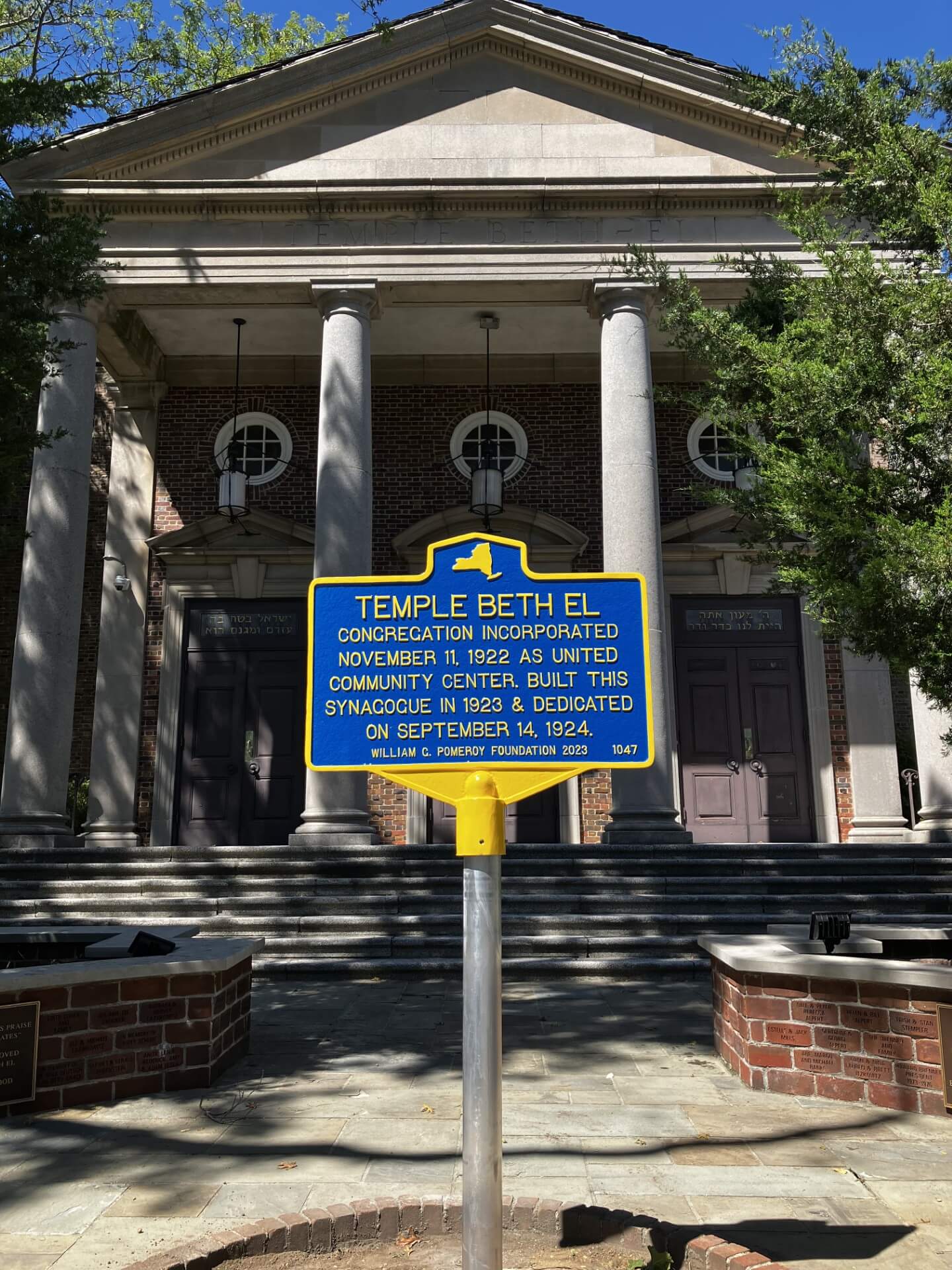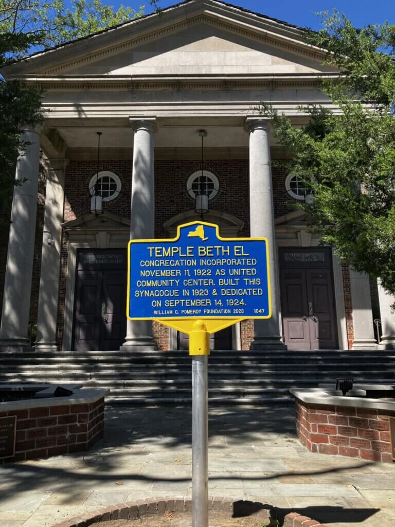 On November 11, 1922, Jewish residents of Nassau County, New York established a congregation under the name United Community Center. The following year the congregation built a synagogue in Cedarhurst, New York. The new synagogue was dedicated on September 14, 1924 and named Temple Beth El. The following day’s edition of the Brooklyn Daily Eagle reported on the dedication, noting that the new temple cost around $140,000 to build of brick and stone with interior furnishings made of oak and mahogany.