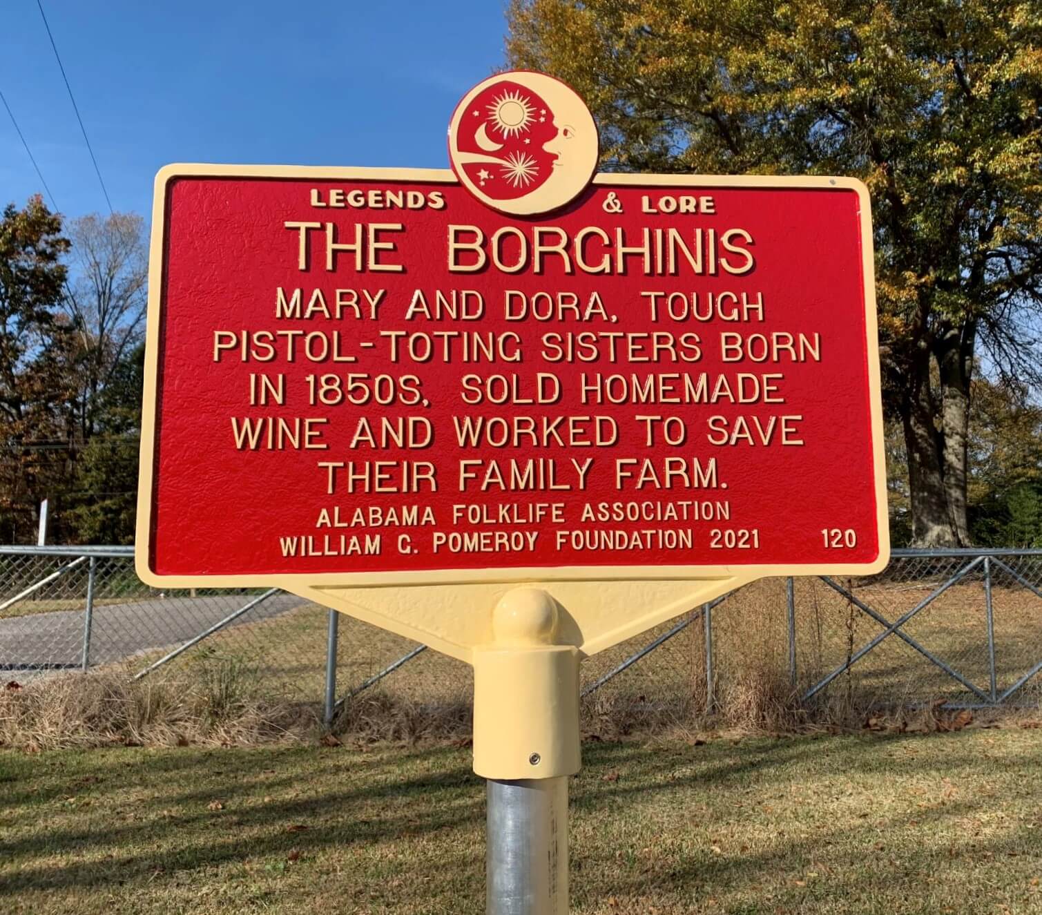 The Borghinis were a legendary historical family from the Caddo community of Lawrence County, Alabama. Italian immigrant Salvatore Borghini, Sr., married Kentucky girl Jane Stegall and, in 1849, relocated to a four-hundred-acre ranch in Caddo, where they raised a son, Salvatore Borghini, Jr., and two daughters, Dora and Mary.