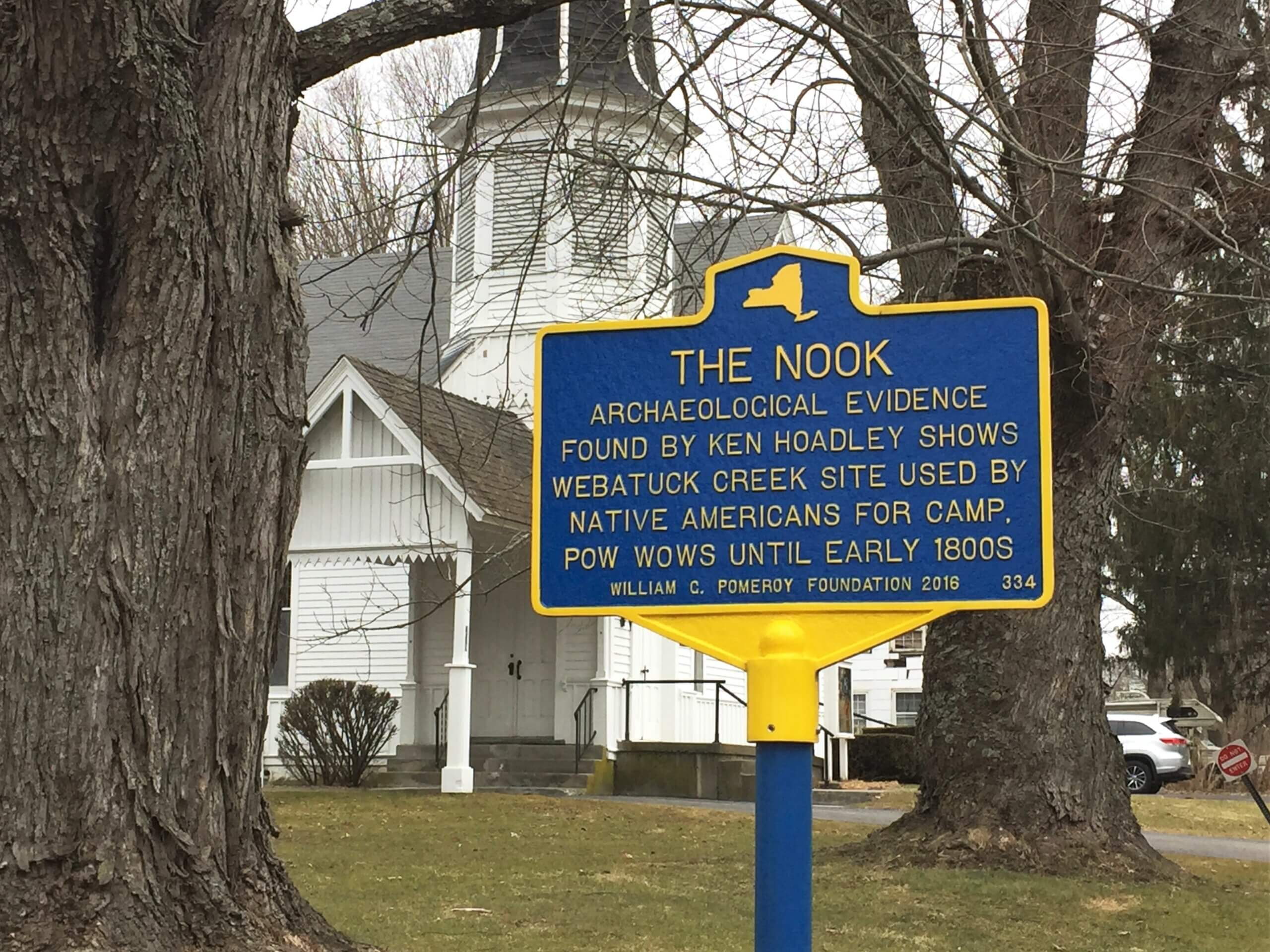 It is noted by Philip H. Smith in General History of Dutchess County: From 1609 to 1876 (1877) that several Indian burial places in Amenia, NY are spoken of in Pequod tribal tradition: one on the lands of Myron B. Benton; another near Amasa D. Coleman’s, still the burial place of families in the vicinity. Of special note was the “place by the river called the ‘Nook,’ near South Amenia, [where] the Indians were accustomed to holding their noisy pow-wows. There were a few wigwams near the outlet of Swift’s Pond.”