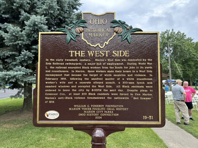 In the early twentieth century, Marion’s West Side was dominated by the Erie Railroad switchyards, a major hub of employment. During World War I, the railroad recruited Black workers from the South for jobs in its yards and roundhouses. In Marion, these workers made their homes in a West Side encampment that became the target of white suspicion and violence. In February 1919, following the unsolved murder of a white roundhouse worker’s wife and a separate alleged assault, a 300-man lynch mob smashed windows and occupied the West Side. All Black residents were ordered to leave the city by 6:00 PM the next day. Despite pleas to Governor Cox, at least 200 Black residents were forced to flee Marion. Marion’s anti-Black violence foreshadowed the nationwide “Red Summer” of 1919.