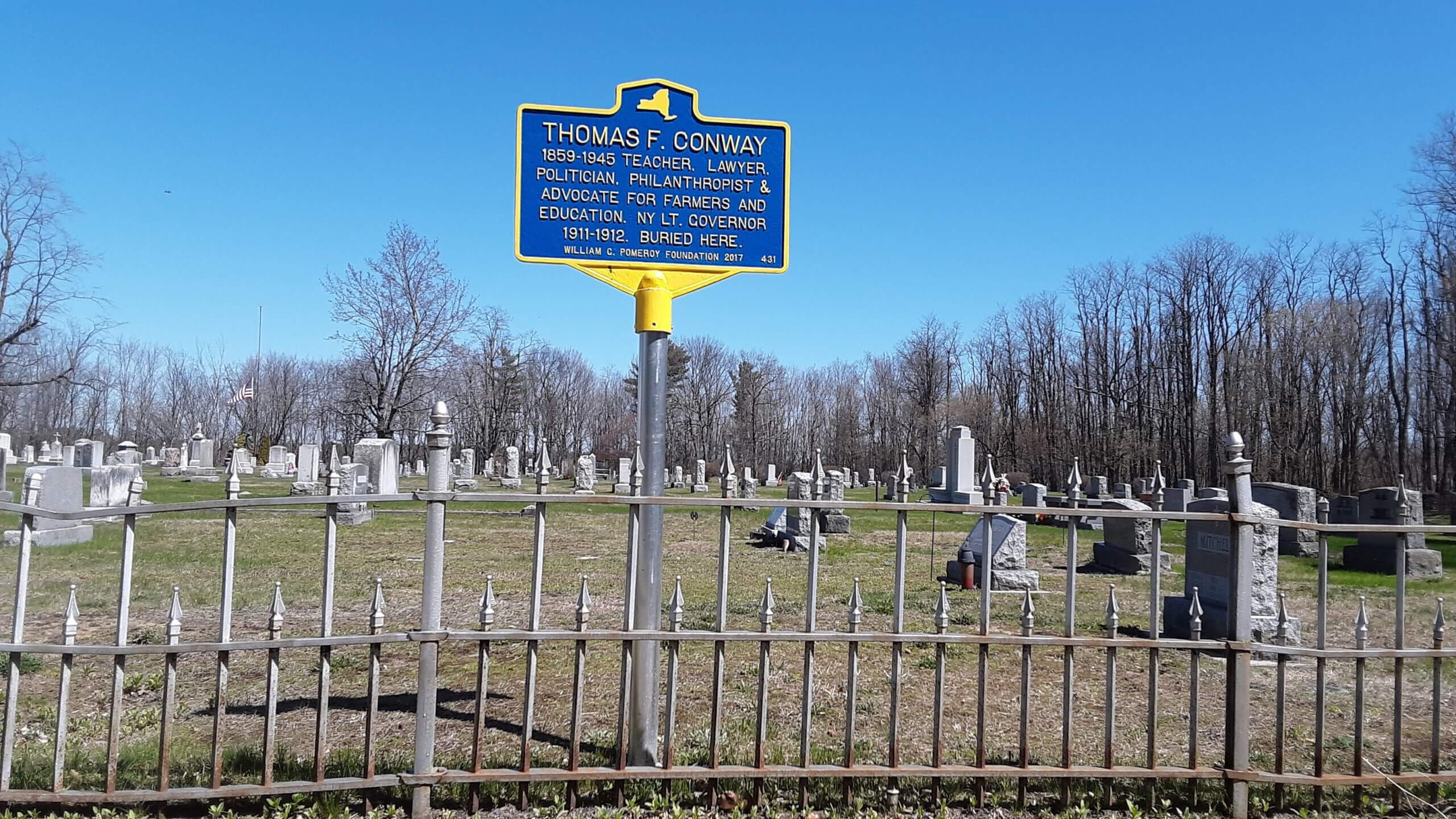 The final resting place of former Lt. Governor Thomas F. Conway (1859-1945) is located at the Immaculate Conception Cemetery, in Keeseville, New York. Born on May 4, 1859 in Chesterfield, New York, Thomas started out as a teacher, but would later became a lawyer and maintain a local law practice. He was also a successful politician, philanthropist, and an advocate for farmers and education. Conway was extremely active in the community of Plattsburgh, until his death at the age of 86 on November 9, 1945.