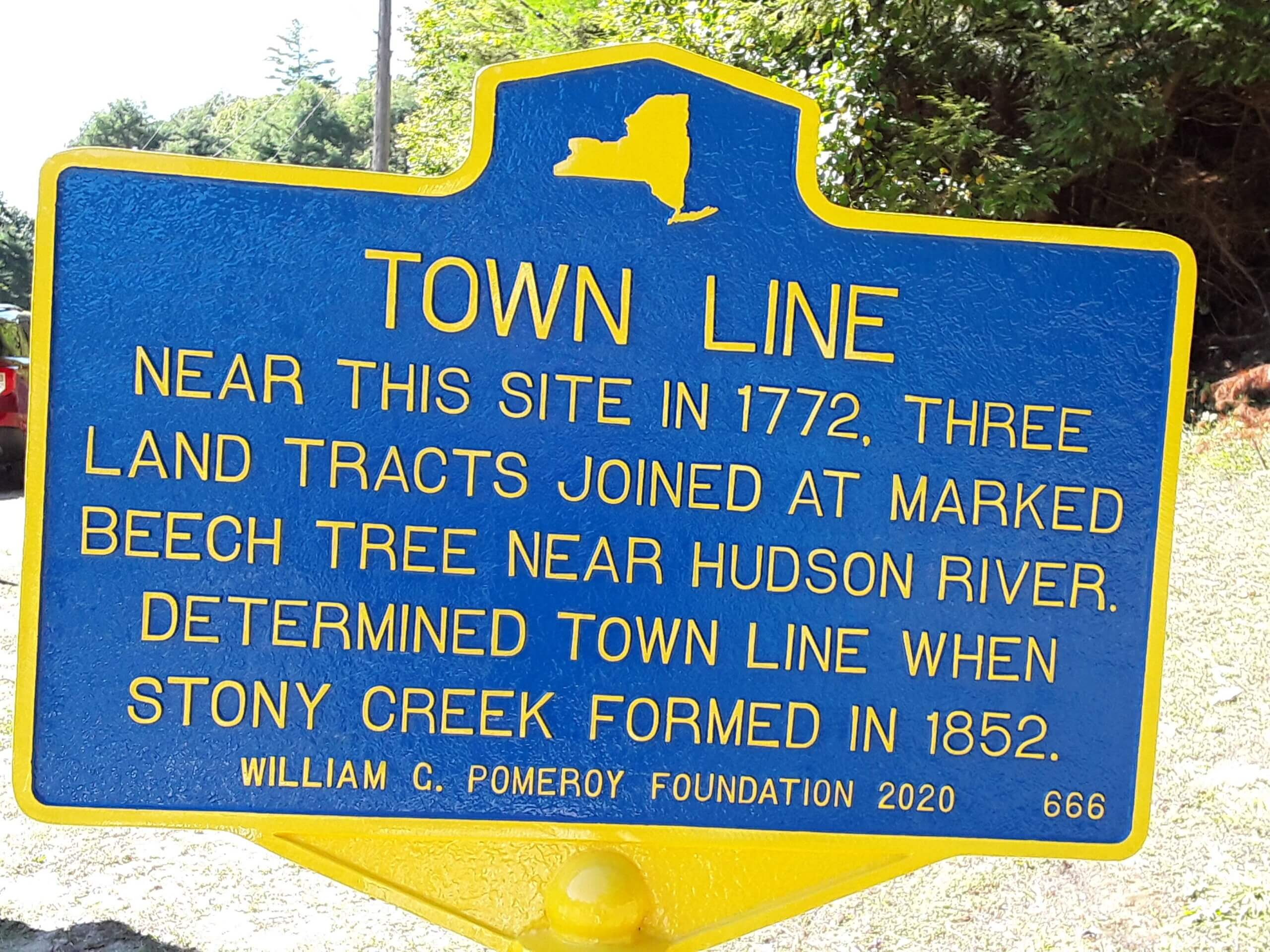 The distinguishing landmark mentioned in the deed was a beech tree near the Hudson River. This beech tree determined the town line when Stony Creek formed in 1852.