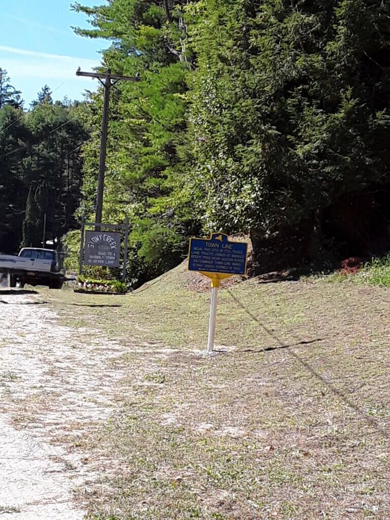 Historically in New York State, when lands and lots were surveyed, often their dimensions or boundaries were distinguished in deeds by landmarks like a rock, an iron rod, or in some cases, a tree. Located near the Adirondack mountains in the Town of Stony Creek is one such site. In 1772 three land tracts, two parts of the Dartmouth Patent and the Township of Hyde, converged at the same point. It was described in Abstract of an Indian Deed in favor of Ebenezer and Edward Jessup and their associates, dated at Johnson Hall in July 1772: