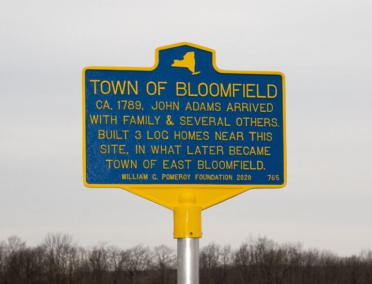 In 1789 a party of approximately 24 men, along with their household members, built three cabins here at what would become the Town of Bloomfield (now the Town of East Bloomfield). Among those who witnessed this settlement were Judge Augustus Porter, who (writing of his own personal experience in 1848) remembered surveying Township No. 10, 4th Range (now East Bloomfield, Ontario County). He states that in May of 1789, when he arrived to conduct this survey: