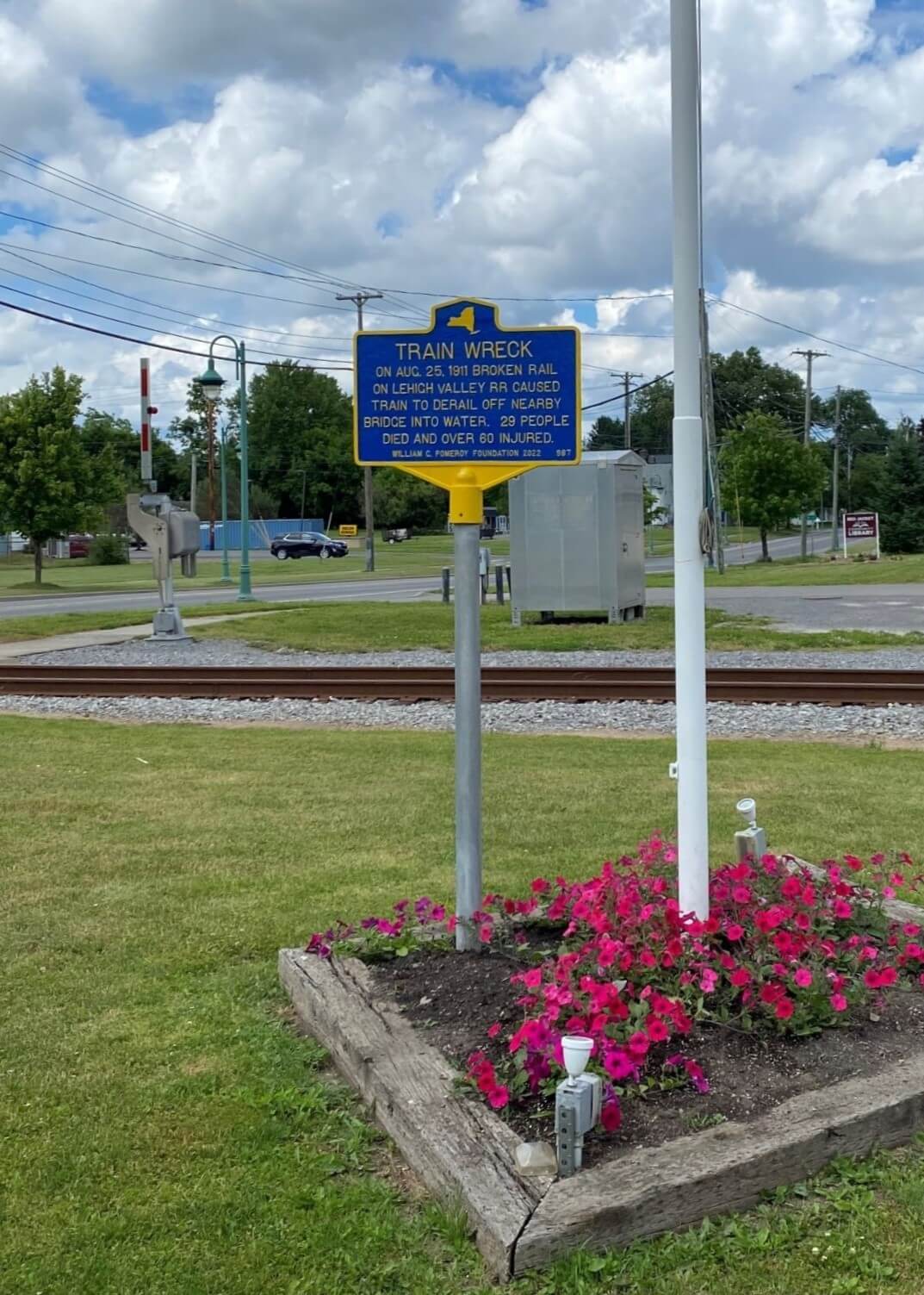 This marker sites within 500 feet of the site of where the wreck occurred, and where previously a Lehigh Valley Railroad station stood. Now the space is used as the Manchester Railroad Park, where visitors can see several refurbished Lehigh Valley Railroad boxcars and a caboose.