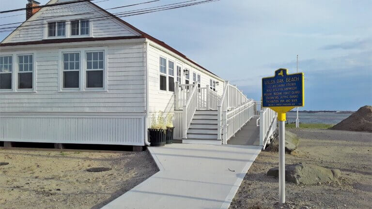 This United States Life Saving Station, formally located at Oak Beach, was built in 1872 for shipwreck rescue and in 1915 it became a Coast Guard Station. This station was active during prohibition, stopping bootleggers and rum runners as well as serving as lookout post during both World War I and World War II. It was decommissioned after 1945, and as of 2019 served as a local community center. It is the only surviving station of its kind on Long Island.