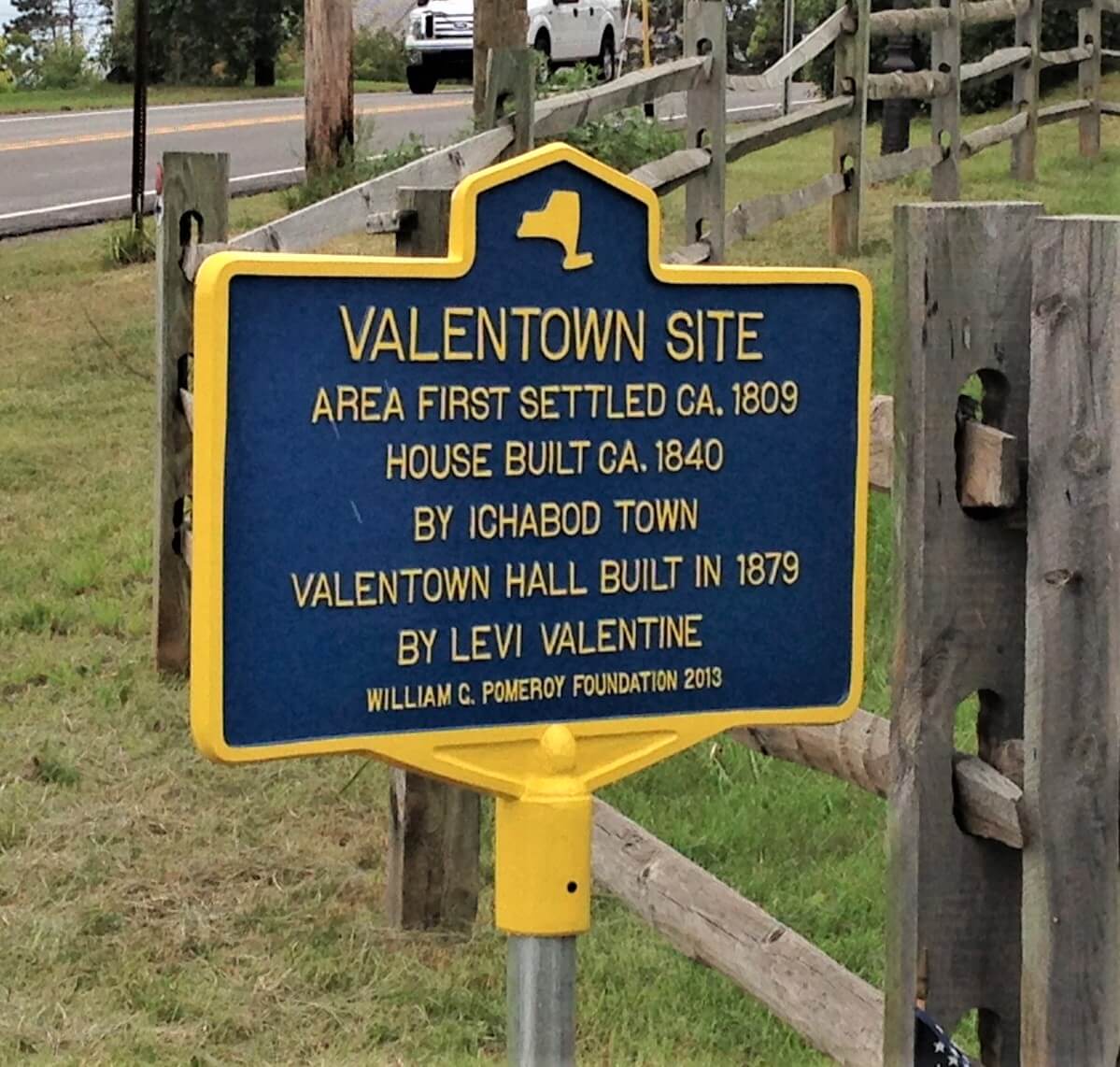 Located in Victor, New York, the early community of Valentown was established circa 1809. By 1840, New Hampshire native Ichabod Town moved to the area and built a small house, which still stands as of 2022. Later in 1879, Levi Valentine built Valentown Hall to serve as a shopping plaza and community center. In 1997 the Hall was added to the National Register of Historic Places. As of 2022, the Hall serves as the Historic Valentown Museum and offers seasonal guided tours of the property.
