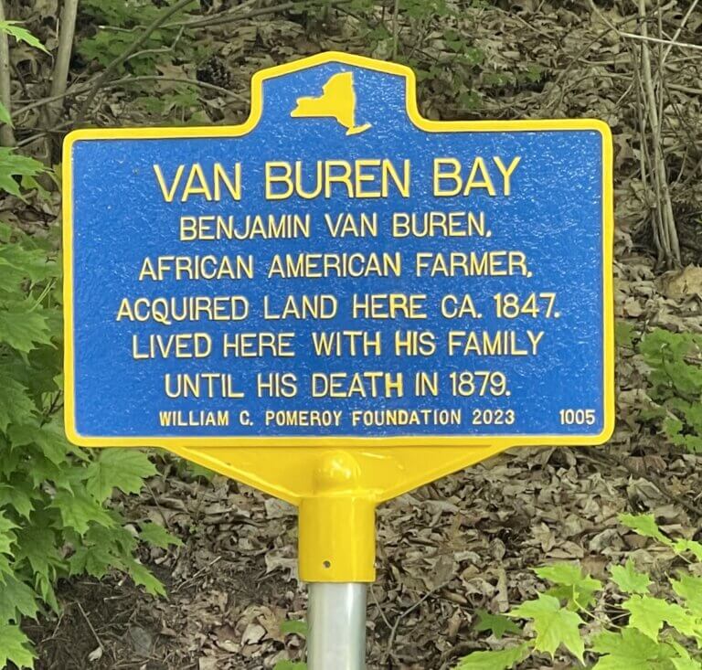 An inlet along the northwest shore of Lake George in the town of Hague in Warren County, New York has been called Van Buren Bay as early as 1883. It was here that an African American man named Benjamin Van Buren settled around 1847. Mr. Van Buren was born circa 1800 in Rensselaer County. Around 1847, he acquired land in the town of Hague on the banks of Lake George. He established a farm and home here for him and his wife Jane, with whom he raised eight children.