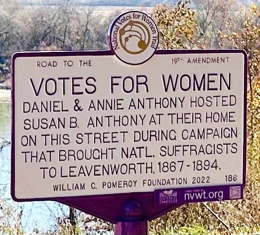 During the Kansas women’s suffrage campaigns from 1867 to 1894, national suffragists often spoke in the city of Leavenworth, Kansas. Prominent Leavenworth residents, Daniel and Annie Anthony were host to Daniel’s sister, Susan B. Anthony, while she was on campaign in the state. A national suffrage leader, Anthony’s name would come to be used for the proposed federal women’s suffrage amendment that would eventually secure women’s right to vote across the country.