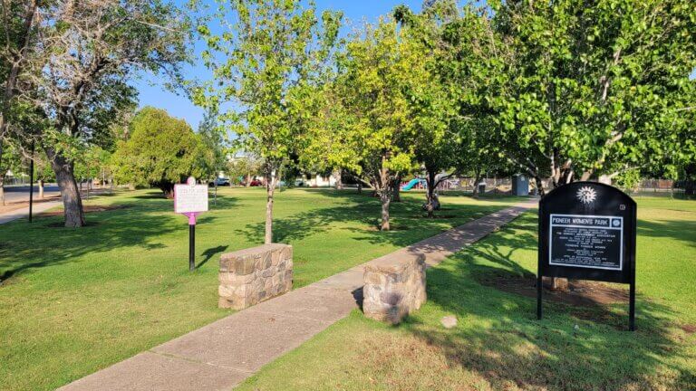 In 1898, the Women’s Improvement Association successfully established Union Park. In the same year they erected a park pavilion which served an many purposes from ice cream parties to concert fundraisers. While the Woman’s Improvement Association worked to advance the community, they also supported woman’s suffrage and in 1917 they sent a telegram to President Woodrow Wilson advocating the passage of the women’s suffrage amendment. Today the Woman’s Improvement Association no longer exists, however as of 2020, the park, now known as Pioneer Women’s Park, remains a legacy of the women who aspired to improve their community and fought for their right to vote.