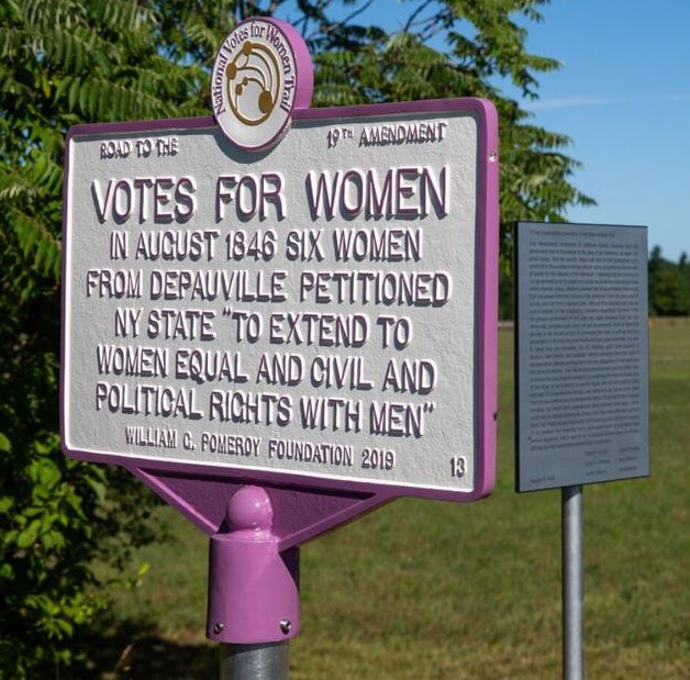 In 1846 New York State lawmakers met at the state capital in Albany to hold a convention for the revision of the New York State Constitution. A group of six women: Eleanor Vincent, Lydia Williams, Lydia Osborn, Susan Ormsby, Amy Ormsby and Anna Bishop of the small community of Depauville attended to submit a petition regarding the rights of women. Their hope was that lawmakers would amend the State Constitution in order “to extend to women equal, and civil and political rights with men.” While their petition was rejected, it did not squelch the ambitions of women to fight for their rights. Two years later famous women’s rights advocates Lucretia Coffin Mott and Elizabeth Cady Stanton, along with several others, met for the 1848 Women’s Rights Convention in Seneca Falls, New York. At this convention, the Declaration of Sentiments was drafted and signed.