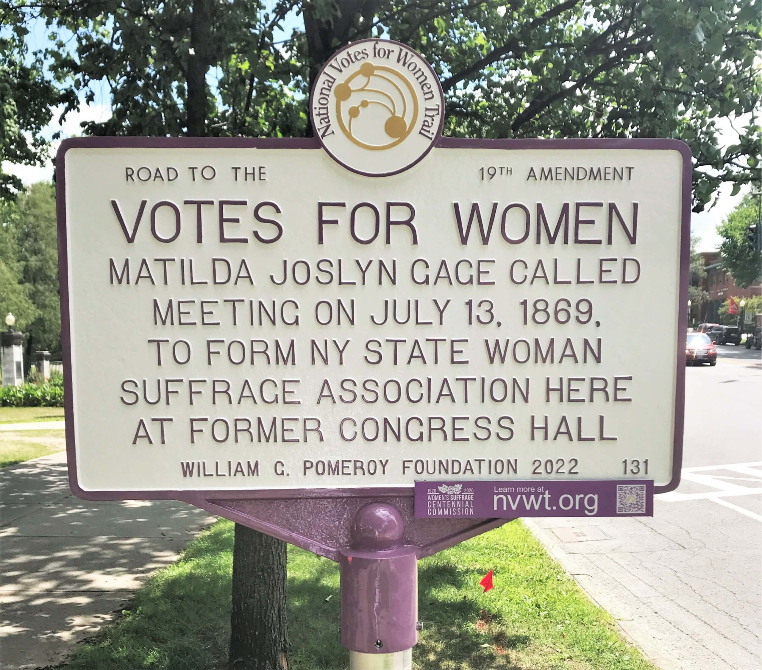 Writer and social activist Matilda Joslyn Gage (1826-1898) called a meeting on July 13, 1869 to form a state women’s suffrage association at Congress Hall, a hotel in Saratoga Springs in Saratoga County, New York. Born and raised in Central New York, Gage had dedicated her life to fighting for equal rights. She was a leader in both New York State and national women’s suffrage associations.