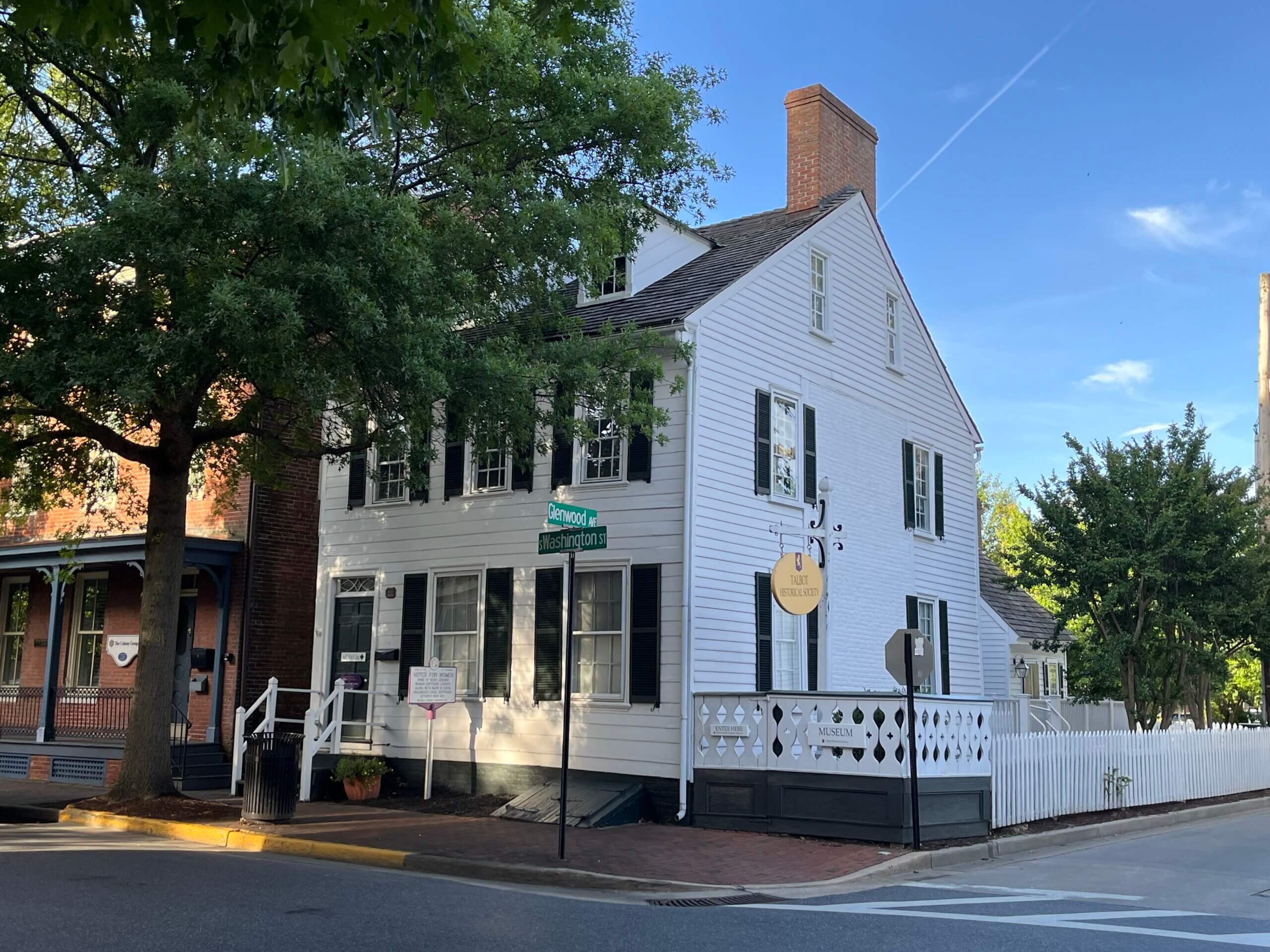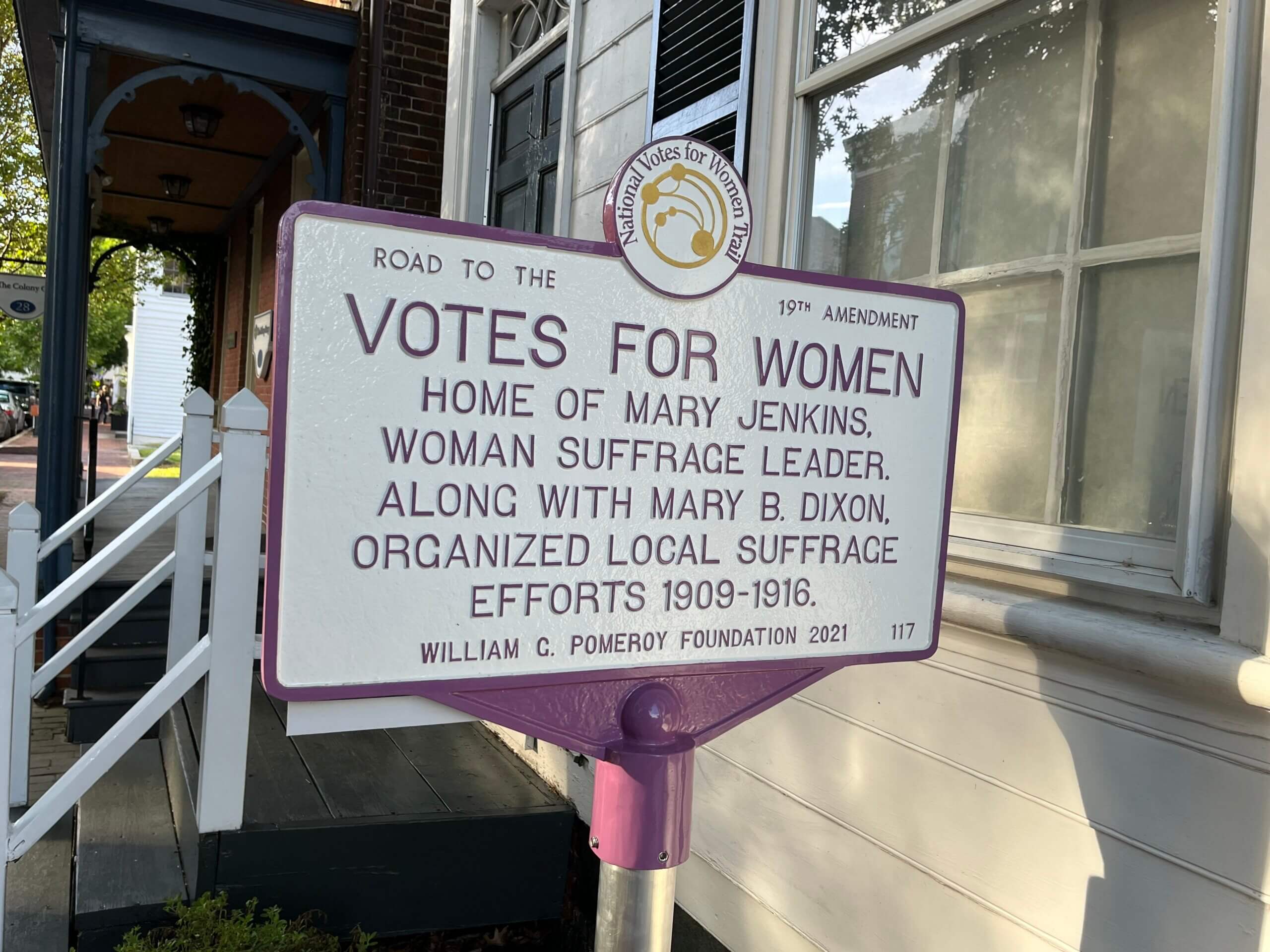 Located at 30 S Washington Street in Easton, Maryland is the former home of suffragist Mary Jenkins, who, along with fellow suffragist, Mary B. Dixon, organized local suffrage efforts in the Talbot County area from 1909 to 1916. Jenkins and Dixon led the Talbot County Just Franchise League in advocating for and promoting women’s right to vote. Dixon’s suffrage activity extended to the state level and continued until at least April 1919, when she was elected to the executive committee of the Just Government League of Maryland, a statewide suffrage organization working for women’s right to vote. As of 2022, Jenkins’ former residence was home to the Talbot County Historical Society Museum.