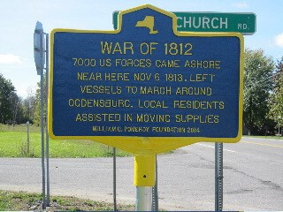 During the War of 1812, on Nov. 6, 1813, close to 7,000 U.S. troops left their boats, came ashore near this site, and marched around Ogdensburg. Local residents were enlisted to help move supplies. The army, led by General James Wilkinson, was making its way toward a rendezvous from which US forces would invade Canada, with the aim of capturing Montreal. This never materialized due to the defeat at the Battle of Crysler’s Farm, but the army suffered almost no losses in their maneuver around Ogdensburg.