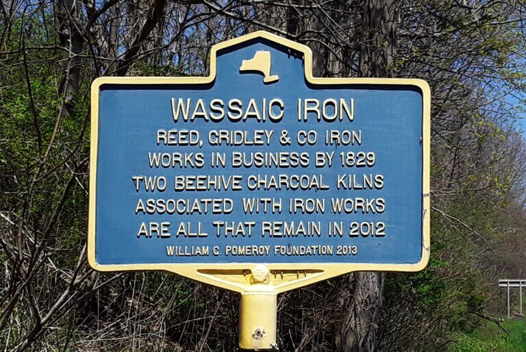 The Wassaic Charcoal Pits are all that remain of the Reed, Gridley & Co. Iron Works, which remained open to the mid-to-late 1820s. The charcoal made in the pits was used to fire the Gridley Blast Furnace. Constructed of stone, the pits are about 30 feet in diameter with an entrance about six-feet high. It took about three weeks of slow burning to transform wood into charcoal. This charcoal was used for fuel in the blast furnace because of its low sulfur content which is harmful to iron.
