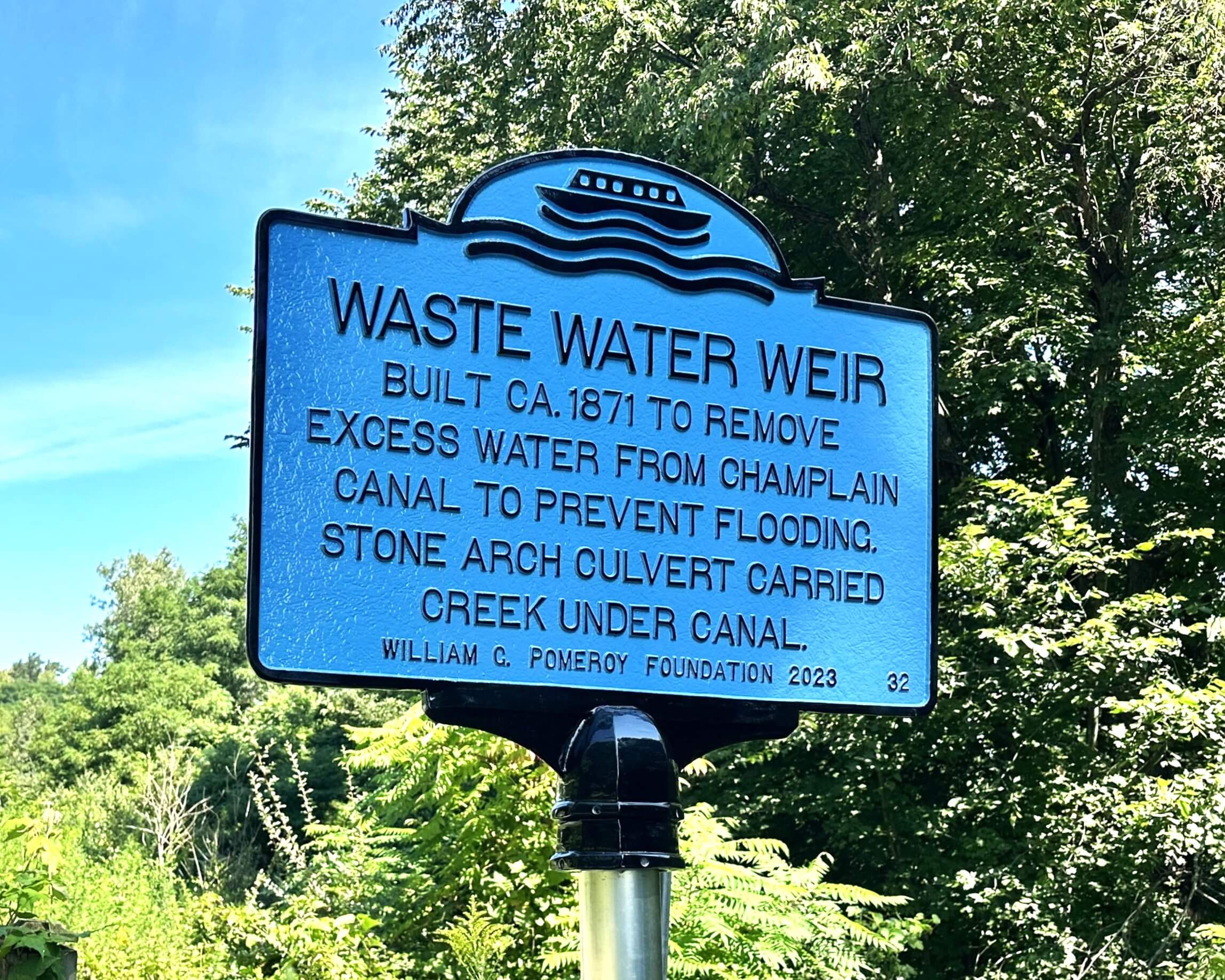 An approximately 35-mile southerly section of the Champlain Canal, from Waterford to Fort Edward, was abandoned upon the completion of a part of the New York State Barge Canal project in 1916, which saw the canalization of the Hudson River. As of 2023, the Champlain Canalway Trail, a 6-mile section of the Empire State Trail, runs along the towpath of the former Champlain Canal from Cohoes to the town of Halfmoon. Halfmoon’s waste water weir structure is still intact and visible from the trail.