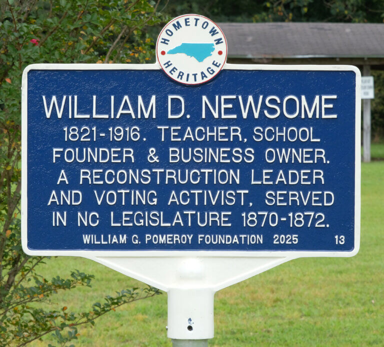 During the Civil War, Newsome served as a private in the 36th Regiment, U.S. Colored Infantry. After the war, he was a leading force in his community of color. Active in education, he served for two years in the North Carolina Legislature and was a prosperous land and business owner. Upon his death in February 1916, his obituary stated that he “owned most of the land lying between the towns of Winton and Ahoskie.”