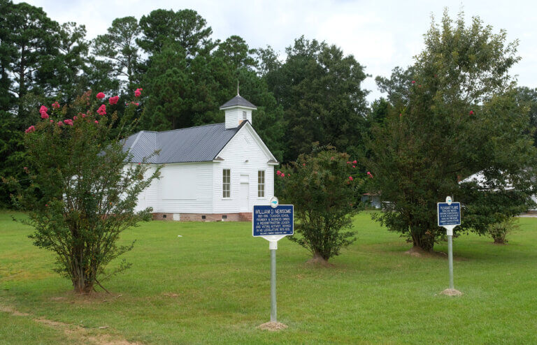 William David “Davie” Newsome helped establish the first schoolhouse for the Pleasant Plains community in 1866 and was its first teacher. Newsome had previously taught students at the Roanoke Island freedmen’s colony established by the U.S. military and missionary organizations. While at Pleasant Plains, he not only oversaw the school, but selected teachers and acquired funding for the school.