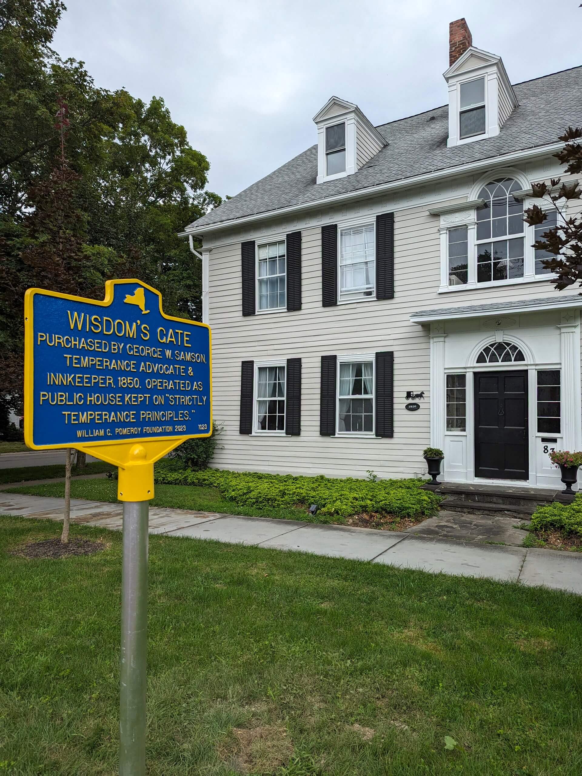 Here, he would run several public houses and inns, including “Mount Etam” between Cortland and Truxton, before purchasing “Wisdom’s Gate” in 1850. The building is believed to have been constructed in 1816 according to the National Register of Historic Places entry for the Historic District of Homer, and it had operated as a public house for much of its existence. Though Samson had served as a keeper of the inn before buying it, with his purchase the “Washington House” was renamed “Wisdom’s Gate,” and in April of 1850 a number of advertisements highlighting the “strictly temperance principles” of the establishment began appearing in local newspapers.