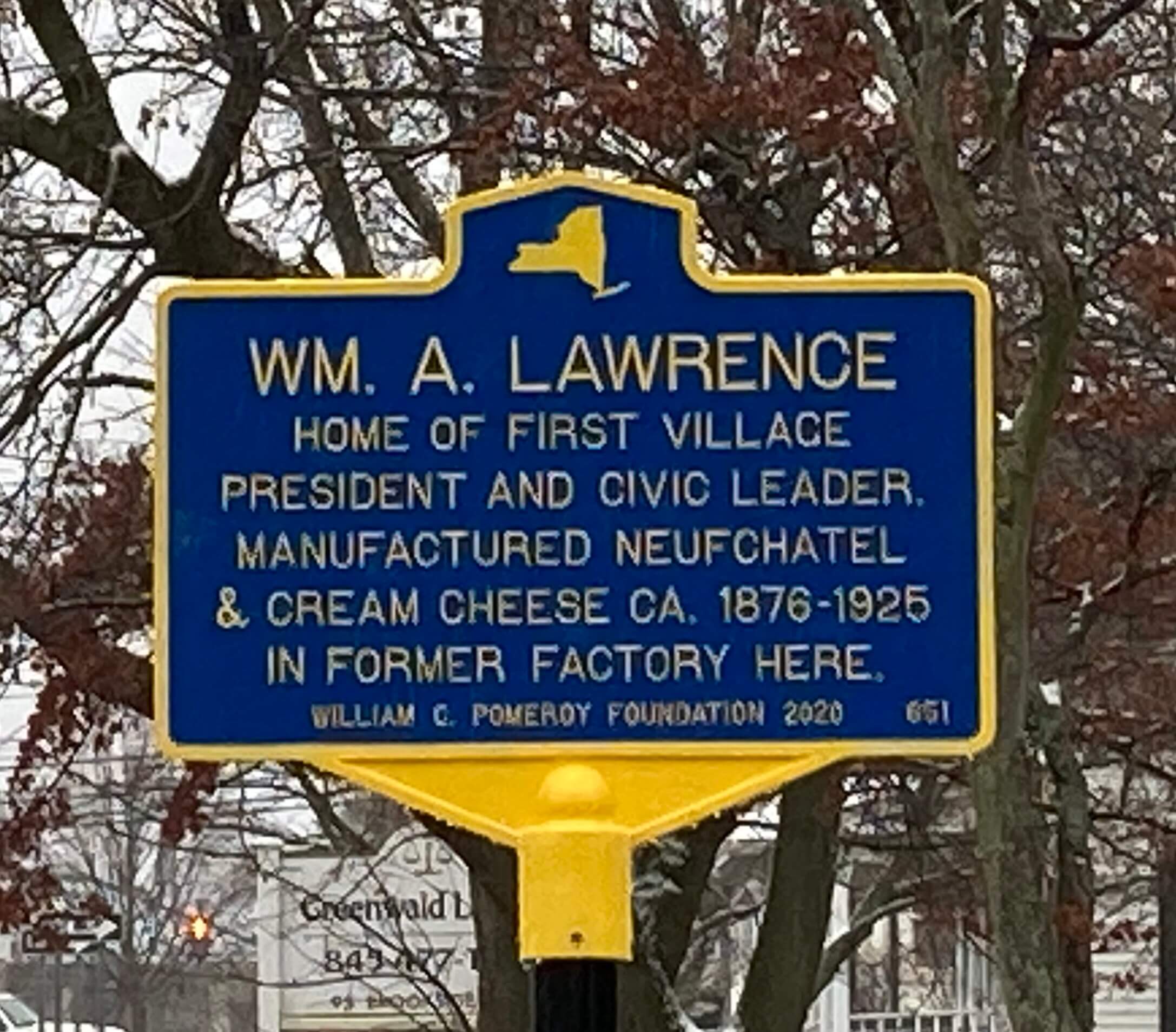 Lawrence and his cheese making operation had a major impact on the economy in and around the creamery in Chester. He employed many area residents and used locally sourced milk in his cheese production. He cared deeply for the Goshen area and was instrumental in organizing the Village of Chester and its fire department and water system. Lawrence was also connected to the construction and rehabilitation of many roads in Orange County.