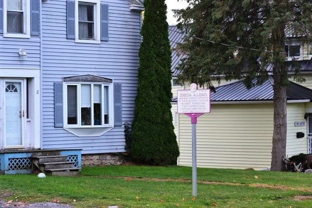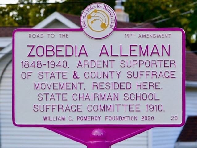 Suffragist Zobedia Alleman once lived at 8 Homer Street, in the Village of Union Springs. Born in New York in 1848, Zobedia Gambee became Zobedia Alleman when she married Dr. Joseph Judson Alleman in 1869. During her life Zobedia was an ardent supporter and active participant of the women’s suffrage movement at both the county and state level. At the time, women in New York State were able to vote for trustees and tax propositions, and in 1910, she served as the Chairman of the School Suffrage Committee for the New York State Woman Suffrage Association. A May 9, 1935 article in the Union Springs Advertiser shares Zobedia’s experience advocating for women’s suffrage: